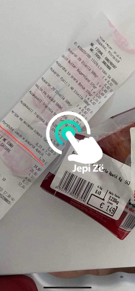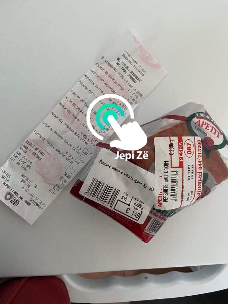 Siç i ka treguar edhe me fotografi, ai ka marrë një pershuyë të Apetit me çmim tek rafti 1,49 euro, mirëpo në arkë iu faturua 1,70euro.