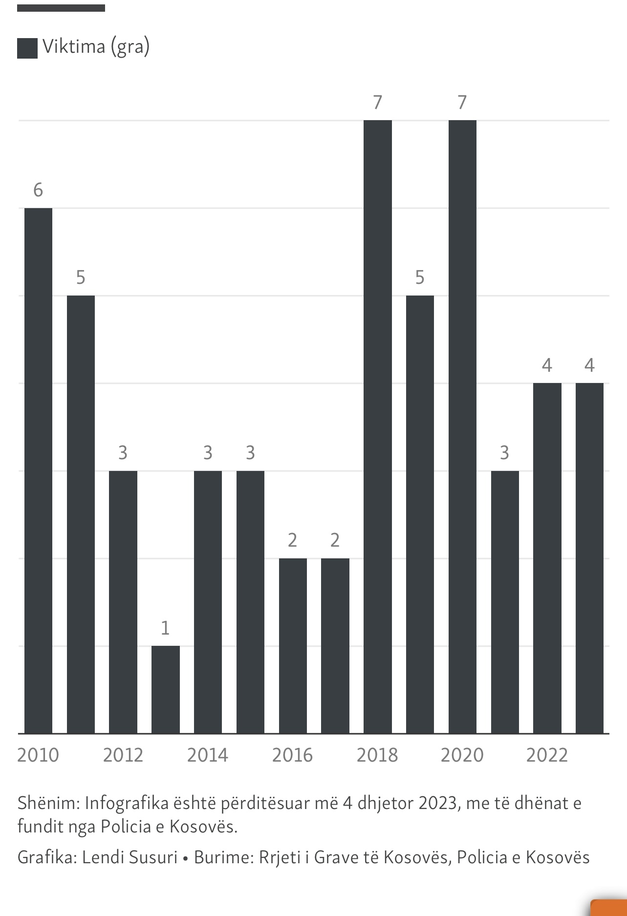 Sipas të dhënave të Policisë së Kosovës, të siguruara nga Radio Evropa e Lirë, në periudhën janar-tetor të këtij viti, në Kosovë u raportuan tri gra të vrara brenda familjes.