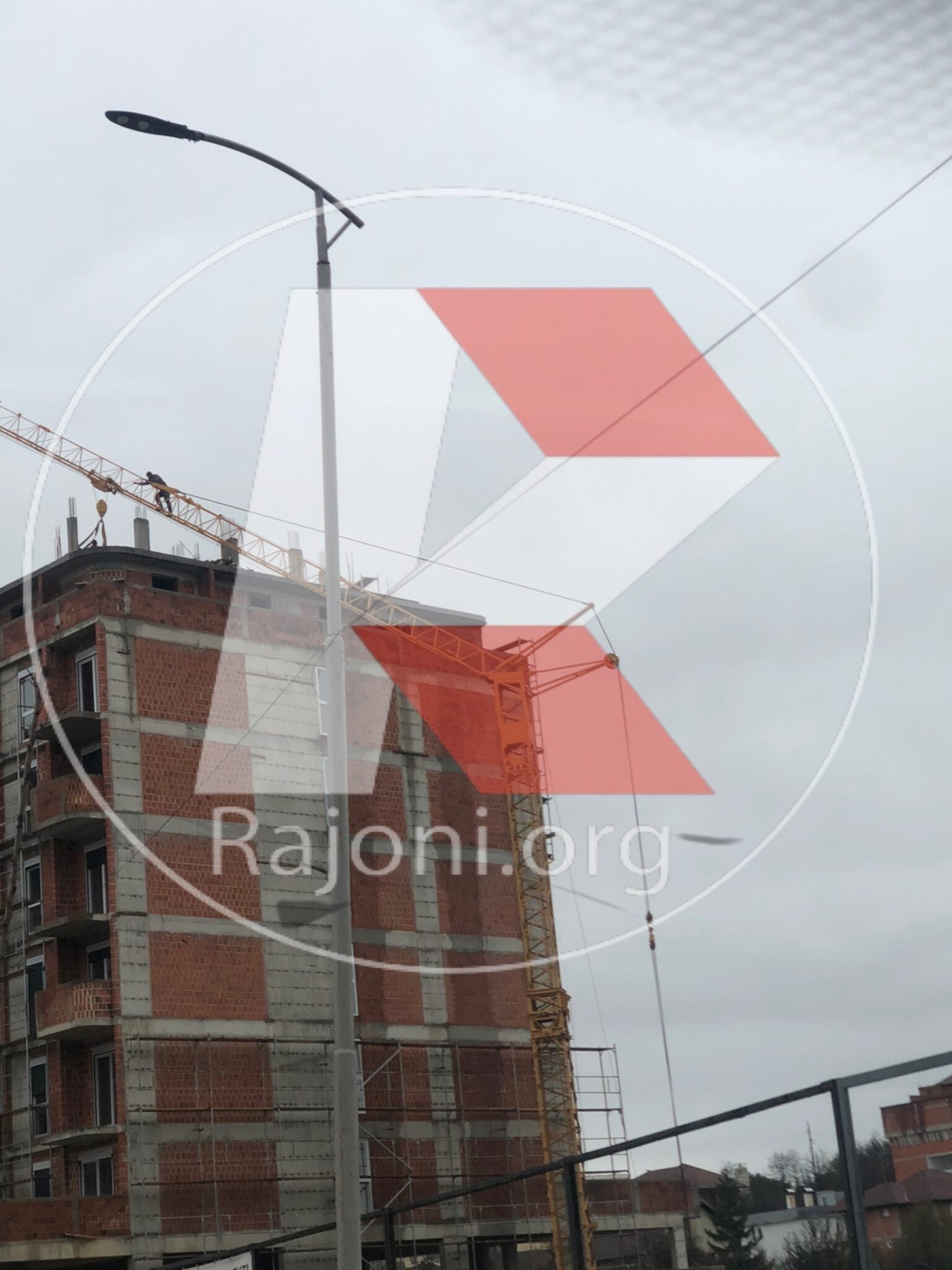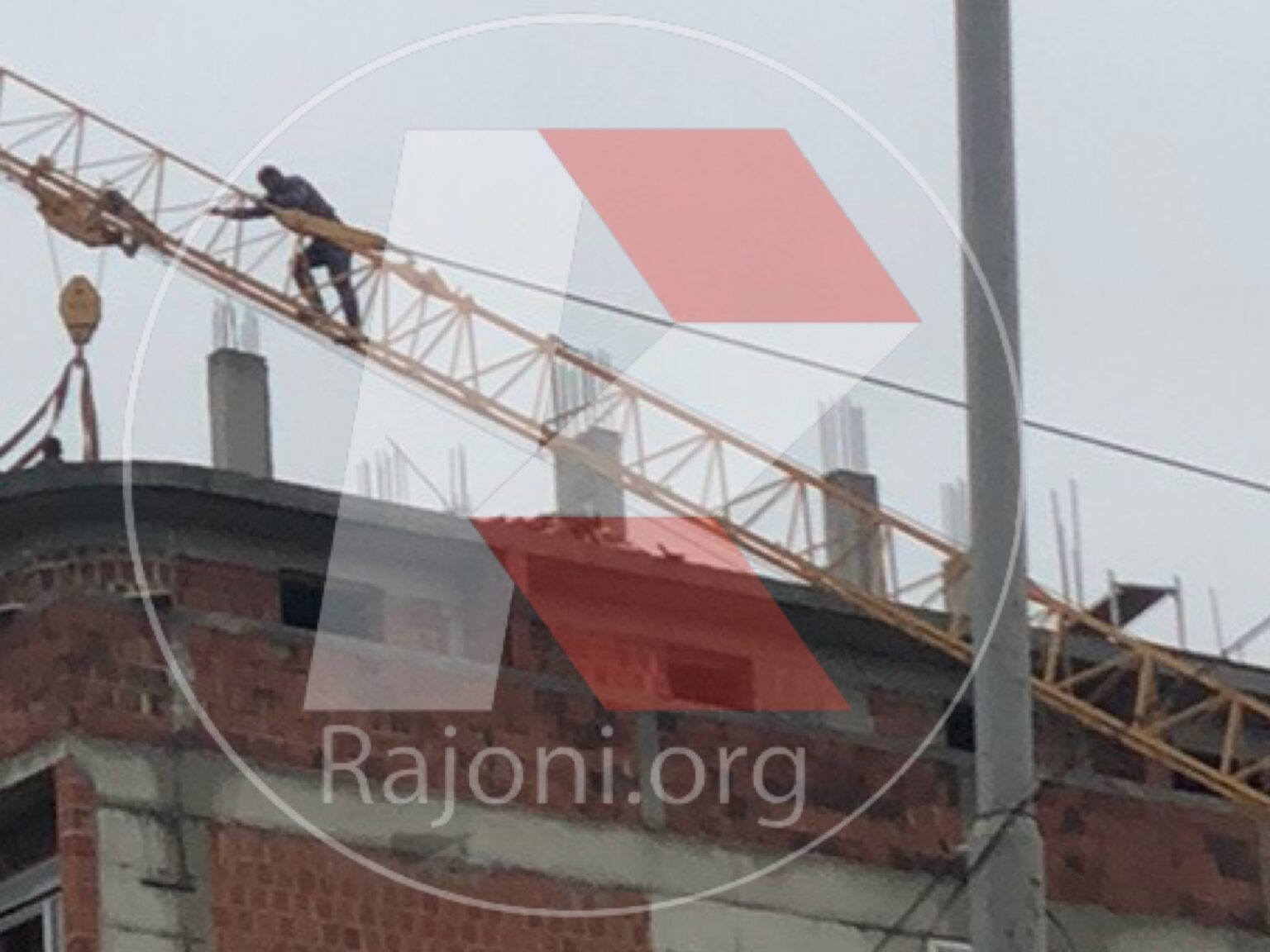Në një imazh të derguara në redaksin e portalit rajoni.org, shihet teksa një punëtor i kompanisë “Drini” pa asnjë masë sigurie, intervenon në struktur të vinçit në qytetin e Skenderajit.