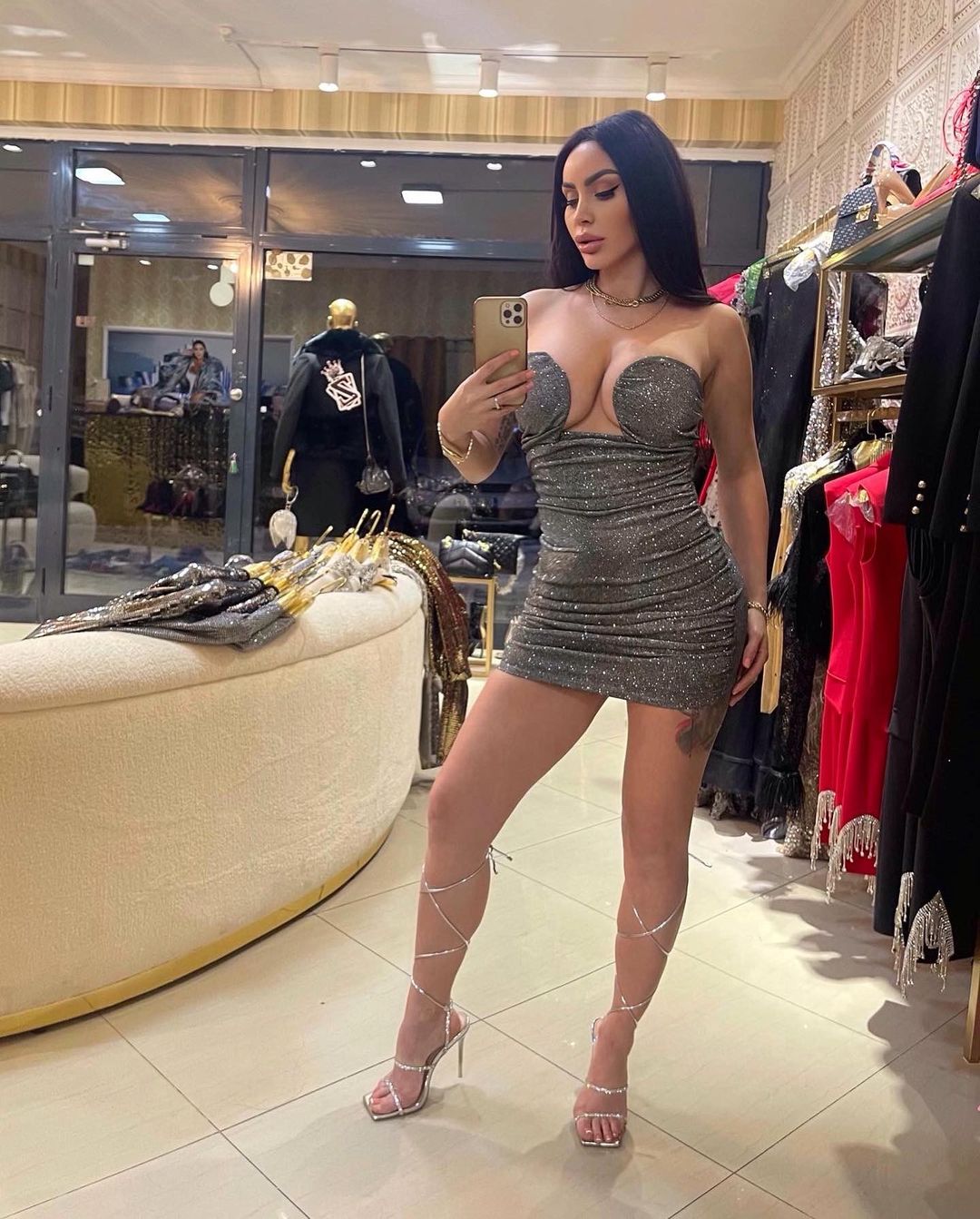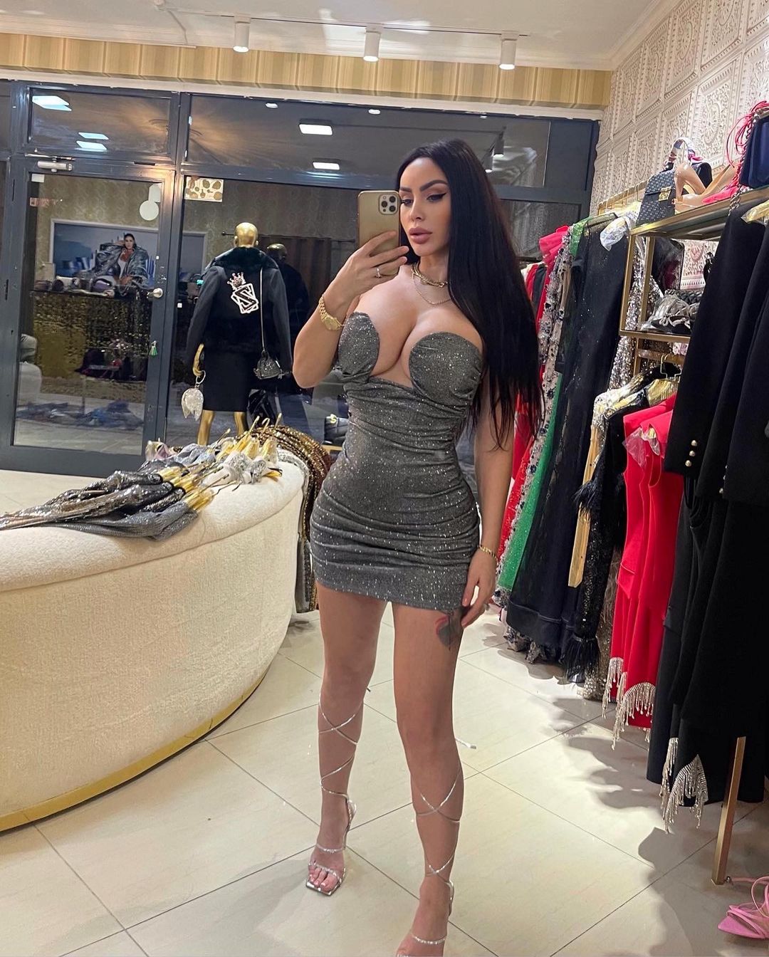 Ajo shumë shpesh poston imazhe me fustana tejet të hapur që tregon më shumë se sa duhet.
