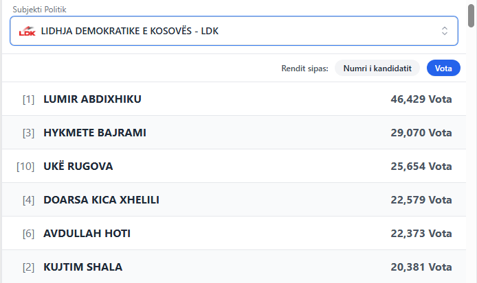 Më pas është Hykmete Bajrami 29,070 dhe Ukë Rugova 25.654