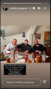 Duke publikuar një imazh nga nata e mbrëmshme ai shkroi: “Pata nderin dhe kënaqësinë ti kem ne shtëpinë time për syfyr kolegët e mi”, të cilët i ka etiketuar ne postim.