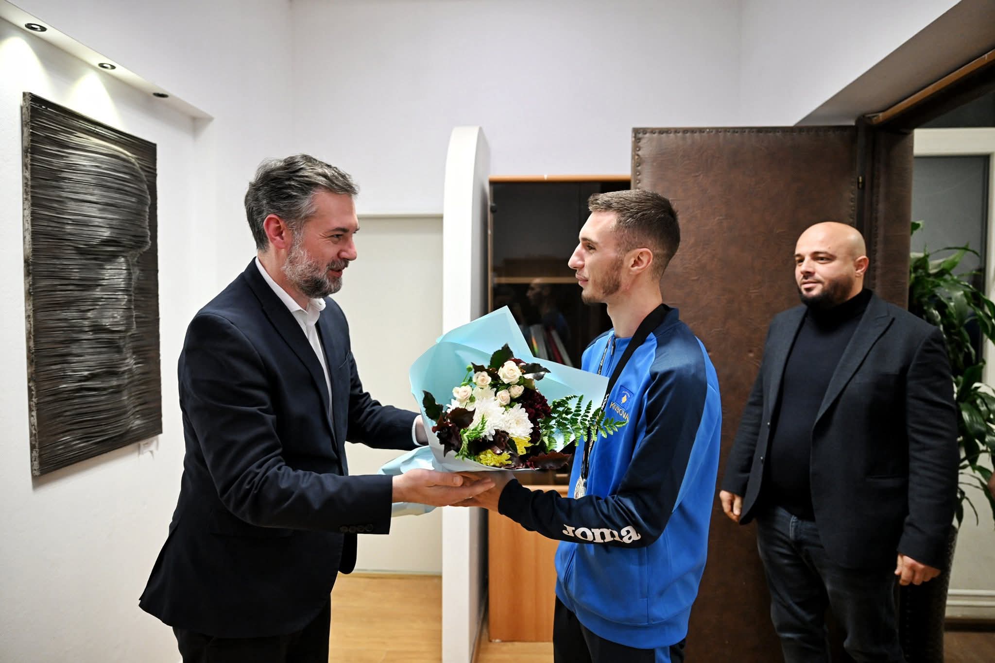 Islam Selmani u kthye sot në Kosovë si nënkampion i botës në karate. Pata kënaqësinë ta mirëpres në zyrë, së bashku me përzgjedhësin Isak Curri, kryetarin e Federatës së Karatesë, Besart Baruti dhe sportistët tjerë.
