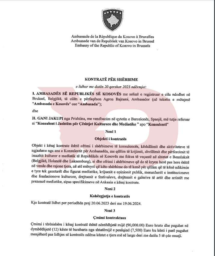 Siç shihet në kontratë, për 12 muaj, Gani Jakupi do të paguhet gjithsejtë 90 mijë euro, apo 7 mijë e 500 euro në muaj.