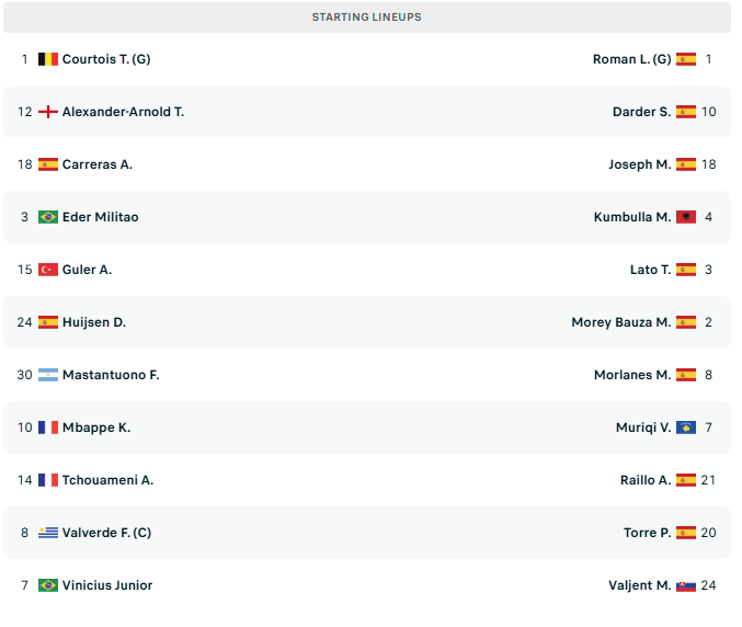 Janë publikuar formacionet zyrtare të ndeshjes mes Real Madridit dhe Mallorcas, e vlefshme për javën e tretë në La Liga.