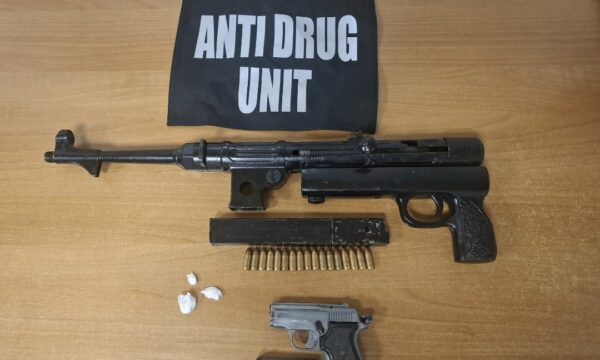“Gjatë kontrollit të banesës është gjetur një armë e gjatë automatike me një karikator që përmbante 17 fishekë të kalibrit 9×19 mm, si dhe një pistoletë me një karikator të zbrazët”, vijon njoftimi.