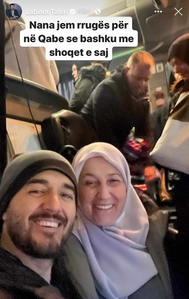 “Nana jem rrugës për Qabe se bashku me shoqet e veta”, ka shkruar këngëtari duke publikuar një foto në disponim të mirë në shoqërinë e nënës së tij.