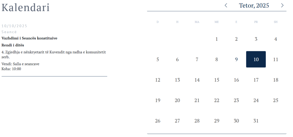 Nesër seanca e Kuvendit në orën 10:00, në rend dite zgjedhja e nënkryetarit serb
