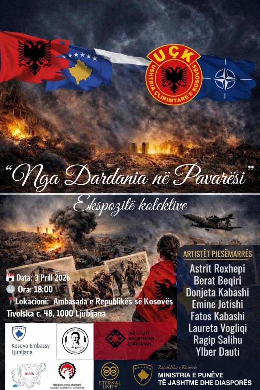 Ambasada e Kosovës në kryeqytetin e Sllovenisë njofton se më 03 prill hapet ekspozita e artit me “Nga Dardania në Pavarësi”, me ç’rast ka ftuar gjithë ata që kanë mundësi të marrin pjesë ne hapjen e saj.