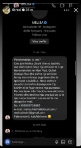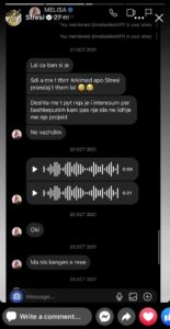 Pas debatit të Melisës dhe Stresit, ekipi i tij menaxhues i Instagramit të rep artistit ka bërë publike bisedat, ku vihet re se konkurrentja e tij i ka shkruar disa herë.