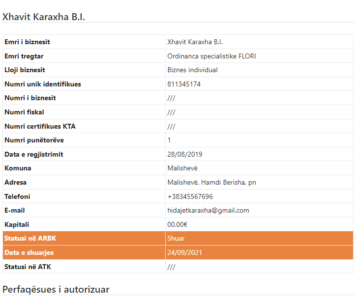 Xhavit Karaxha kishte qenë pronar i “Ordinancës specialistike FLORI” në Malishevë, por ky biznes është shuar më datë 24.09.2021, për çka është raportuar se profesionin e mjekut, Karaxha e ushtronte në një klinikë tjetër.