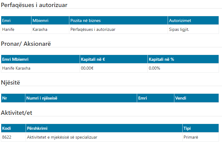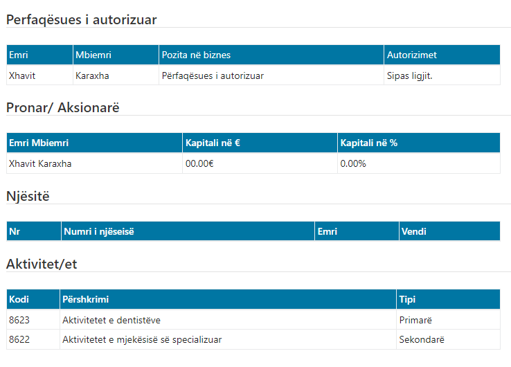 Në këtë biznes, tashmë të shuar qysh moti përshkrimi thuhej se ushtroheshin aktivitete mjekësore dentare dhe të “mjekësisë së specializuar”.