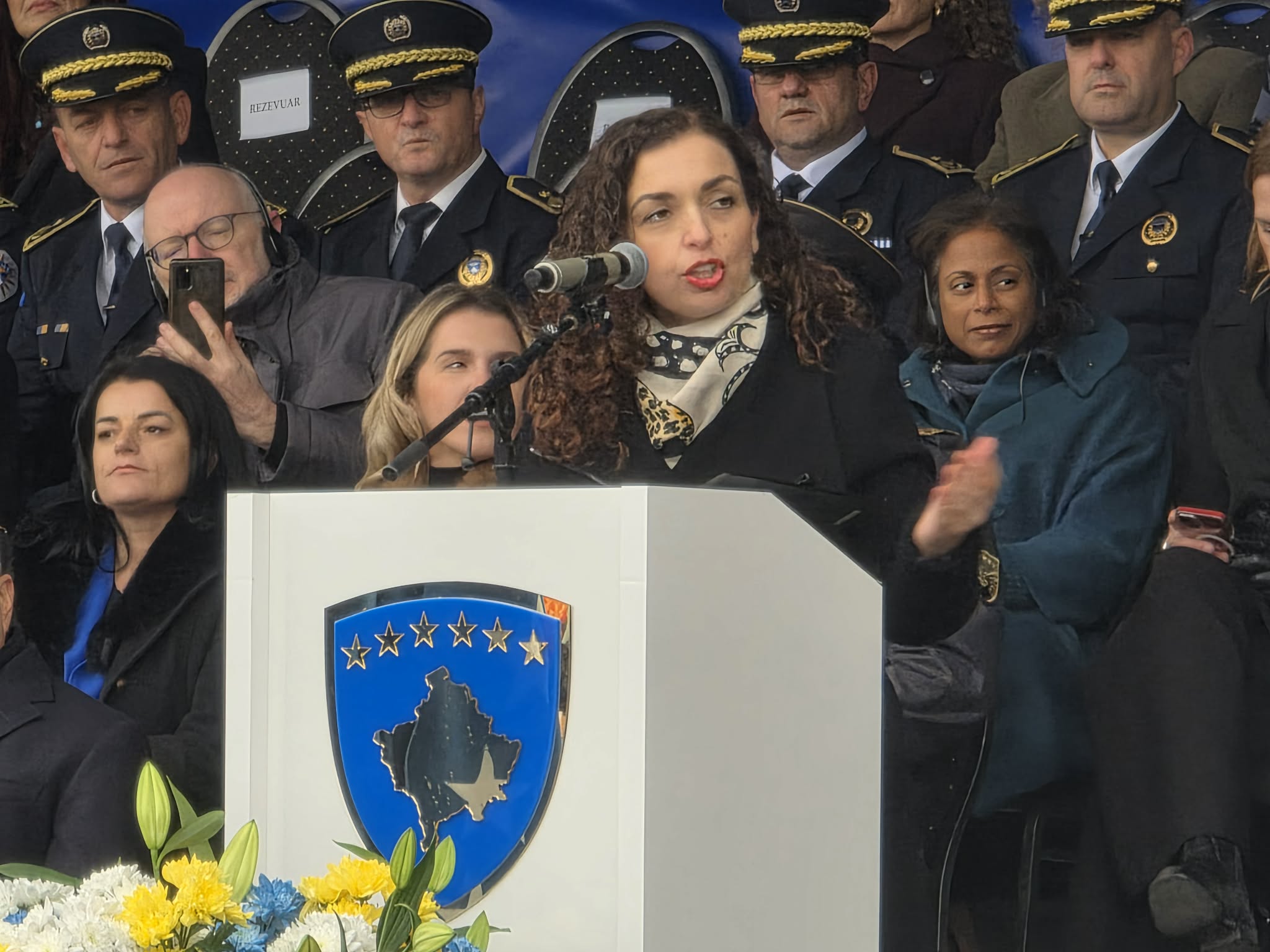 Presidentja e Kosovës Vjosa Osmani në ceremoninë e parakalimit të Trupave të Forcës së Sigurisë së Kosovës dhe Policisë së Kosovës në 18- vjetorin e pavarësisë ka thënë se mbështet fuqishëm marshin, i cili do të mbahet pas pak në mbështetje të ish-krerëve të UÇK-së, me moton: “Drejtësi, jo politikë”.