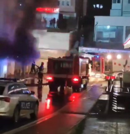Një pjesë e objektit të qendrës tregatre “Royal Mall”, në Rrugën B, është përfshirë nga zjarri mbrëmë, duke shkaktuar tym të madh.