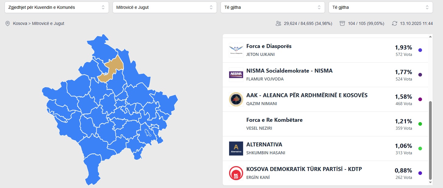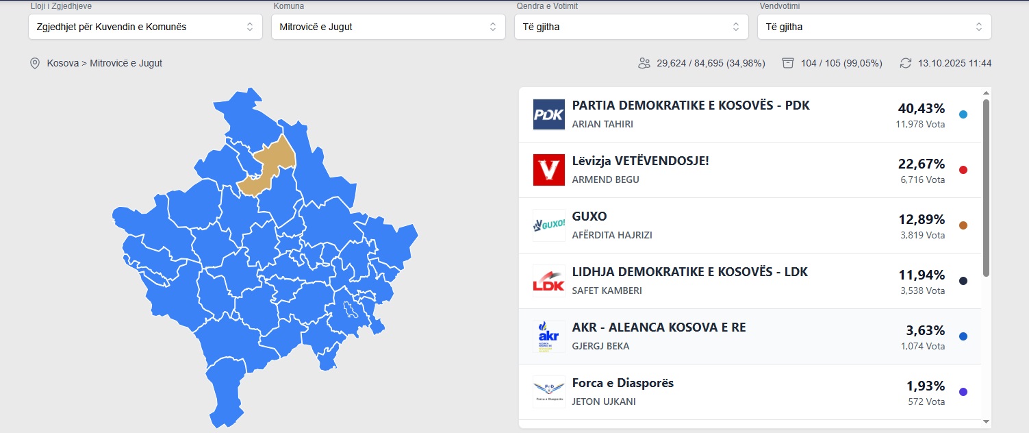 Këto janë rezultatet e deritanishme ku tregojnë epërsi të madhe të PDK-së në Mitrovicë./Veriu.info