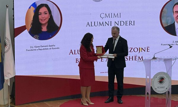 Presidentja Vjosa Osmani u nderua sot nga UP-ja me çmimin “Alumni Nderi i Universitetit të Prishtinës”.