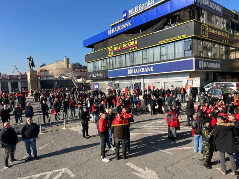 Protestuesit po vazhdojnë të mblidhen në sheshin “Skënderbeu” në Shkup për tubimin që do të mbahet në përkrahje të ish-krerëve të UÇK-së që po gjykohen në Hagë.