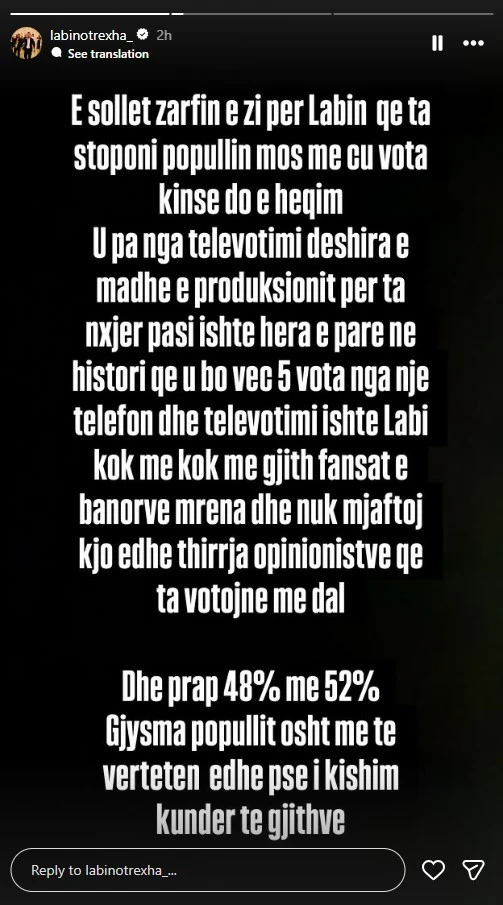 Pas eliminimit nga Big Brother VIP Kosova, këngëtari Labinot Rexha ka reaguar publikisht, duke hedhur dyshime mbi mënyrën e largimit të tij.
