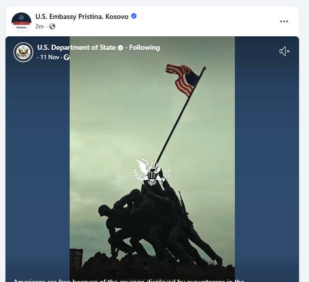 Në faqen e ambasadës sot është shpërndarë një postim i Departamentit Amerikan të Shtetit që i kushtohet ushtrisë amerikane.