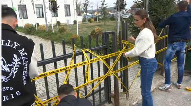 Të rinjtë e PDK-së kanë vendosur shirita të verdhë në hyrje të Komunës së Drenasit, me mbishkrimin “danger”.