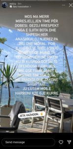Edhe banorja e Big Brother VIP Kosova, Benita e ka ngushëlluar Elijonën për humbjen e axhës. Këtë e ka bërë përmes një InstaStory, duke u lutur për durim...