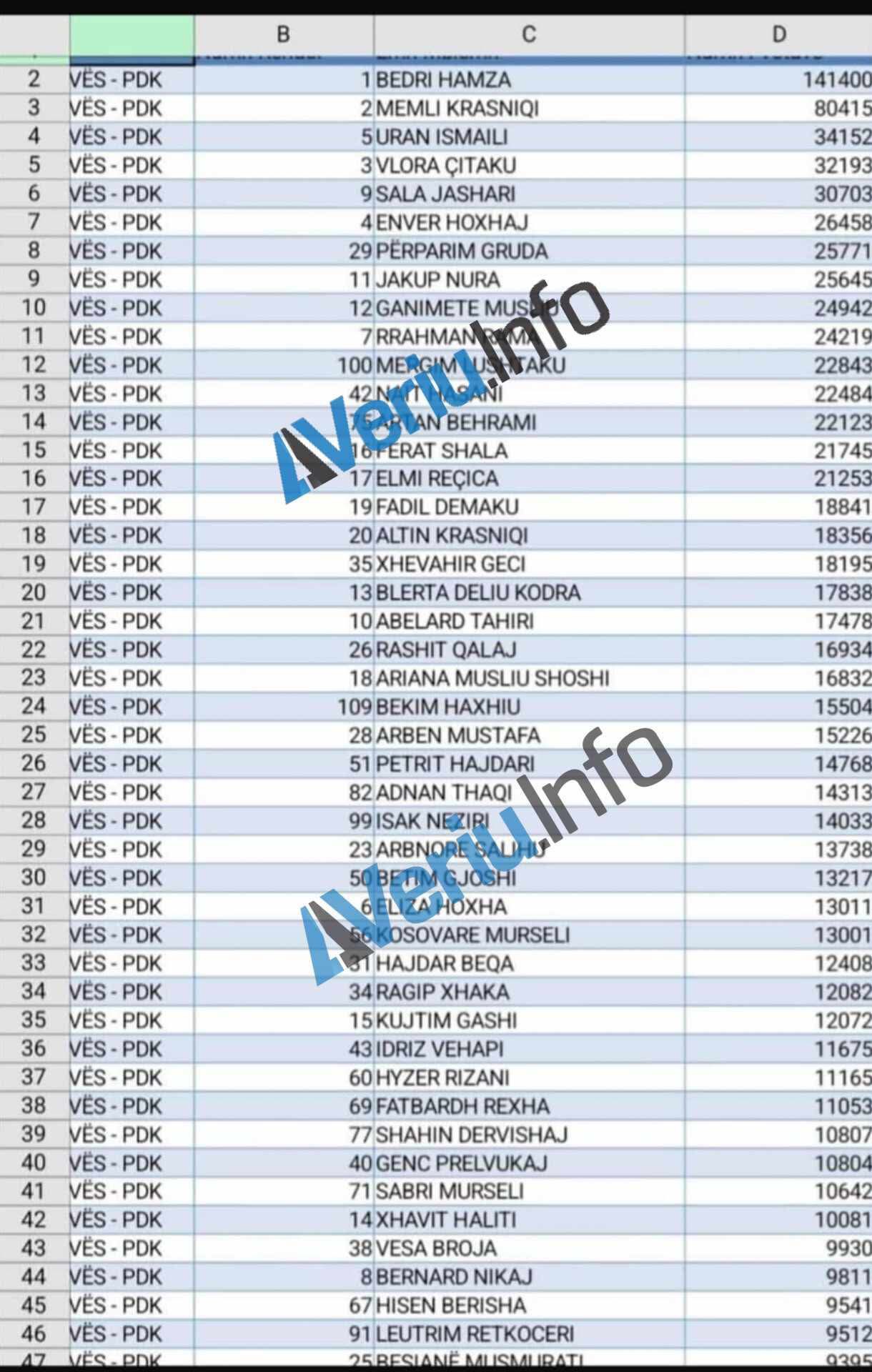 Gazeta Online Veriu.info ka siguruar listën e përditësuar të votave të kandidatëve për deputet nga PDK.