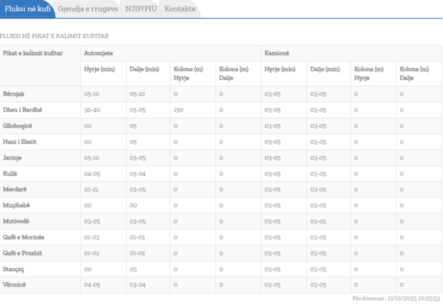 Qendra Kombëtare për Menaxhim Kufitar ka përditësuar të dhënat mbi pritjet në kufi.