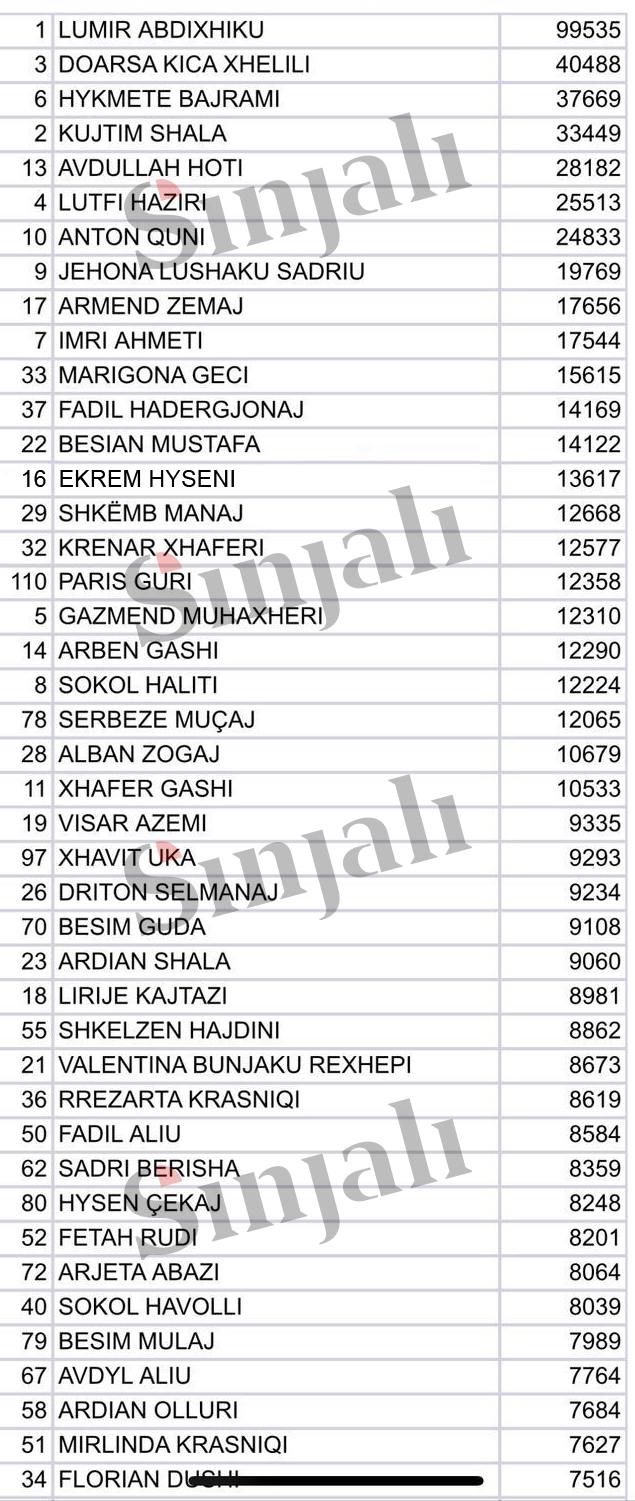 Pas këtyre emrave të njohur të LDK-së, në listën e siguruar nga Sinjali, në dhjetëshen e kandidatëve më të votuar për deputet renditen: Lutfi Haziri, Anton Quni, Jehona Lushaku-Sadriu, Armend Zemaj dhe Imri Ahmeti.