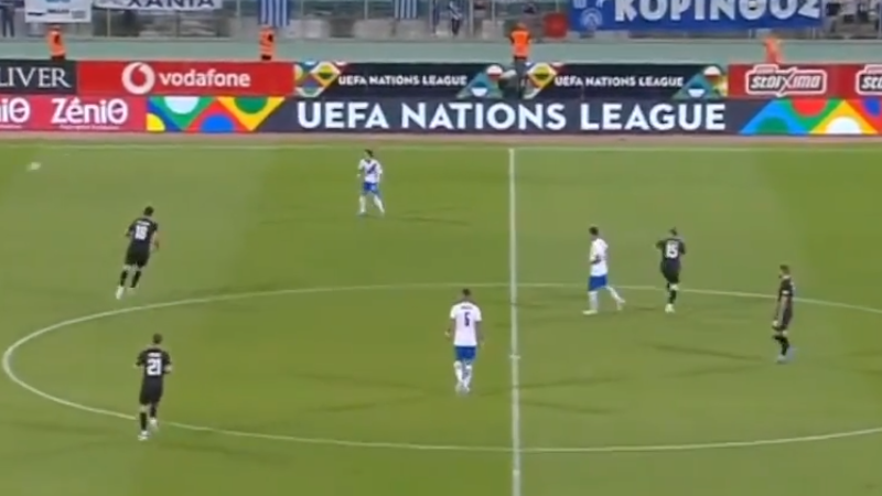 Gjersa, e njëjta nuk mund të thuhet për helenët të cilët patën dominimin në 45 minutat e para. Ata kishin edhe një rast mjaft të mirë në minutën e 18’të me anë të mesfushorit, Tasos Bakasetas, por goditjen e tij e ndali për mrekulli portieri, Arijanet Muric.