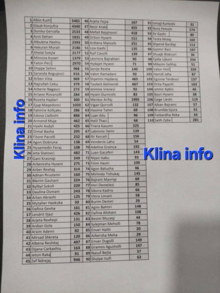 Më së shumti vota mori Albin Kurti – 5 mijë e 481 sosh, i pasuar nga Glauk Konjufca, me 4340.