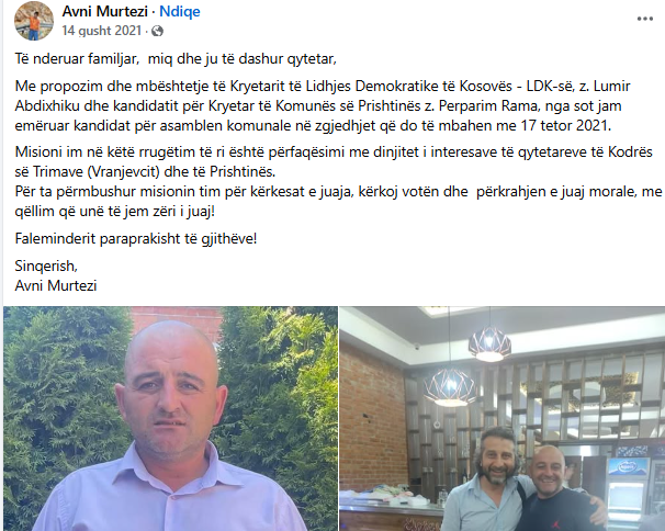 Në vitin 2019, ai ishte zgjedhur si kryetar i nëndegës se dytë të LDK-së në Kodrën e Trimave.