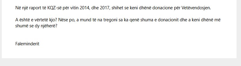 Edhe pse emri i tij figuron si donator, Demokracia.com ka zbuluar se ky donacion vjen nga kryetari aktual i Prishtinës.