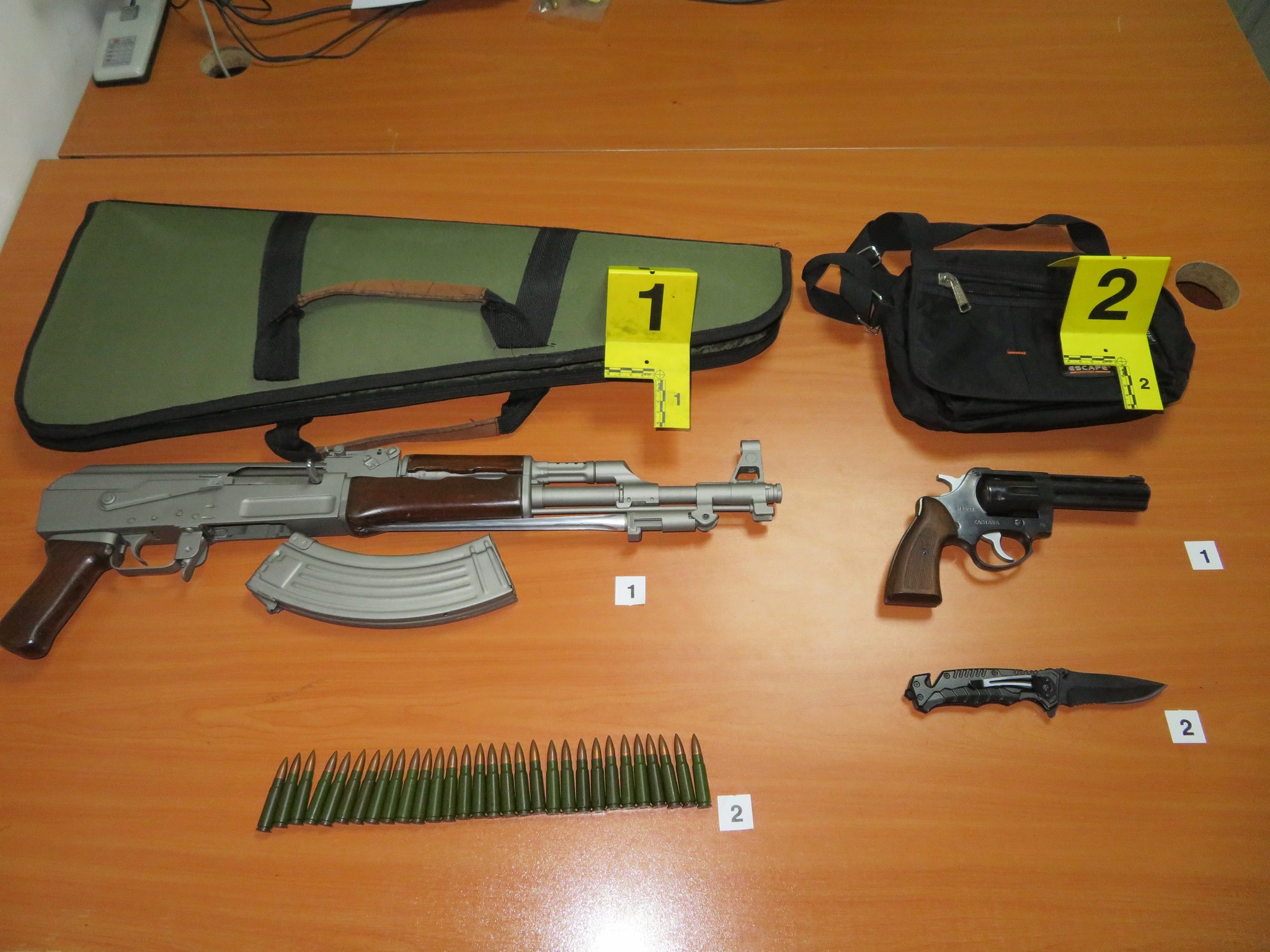 Në rastin e dytë në Vushtrri , është arrestuar një i dyshuar m/k- ku pas kontrollit te detajuar në automjetin e tije janë dhe gjetur dhe sekuestruar një armë e gjatë pushkë automatike me 30 fishek, një pistoletë dhe një thikë. Pas intervsitimit , ndaj të dyshuarit është iniciuar rast: ,,Mbajtje ne pronësi, kontroll, posedim të pa autorizuar të armës “i dyshuari është liruar në procedurë të rregullt.