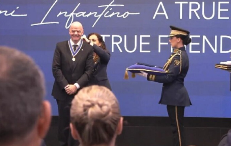Në një ceremoni të organizuar të mërkurën në Prishtinë, Infantino është dekoruar me Medaljen e Nderit.