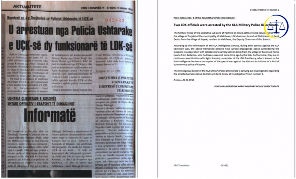 “Provat tregojnë gjithashtu që Hashim Thaçi iu tha anëtarëve të delegacionit të arrestuar se UÇK-ja nuk e njihte parlamentin e Kosovës, i pyeti ata dhe i bëri ata që të shkuajnë deklarata që hiqnin dorë nga Rugova dhe LDK-ja dhe iu kërkoi atyre që të jepnin dorëheqje nga postet parlamentare”, tha prokurori Tieger.