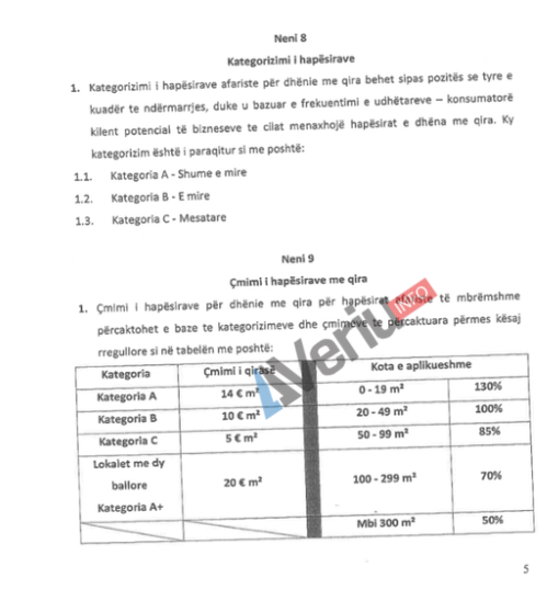 Qiraja e negociuar në vlerë prej 5.94 euro është shumë më e vogël, se sa çmimi për kategoritë e lokaleve deri në 300 m2. Se si ka vendosur Kryeshefi Ekzekutiv këtë vlerë të qirasë për m2 është shumë e dyshimtë.