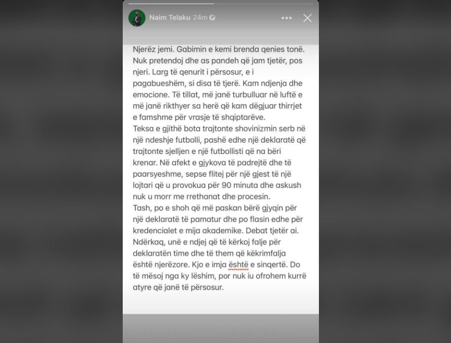 “Njerëz jemi. Gabimin e kemi brenda qenies tonë.” – nisi komentin e tij Telaku.