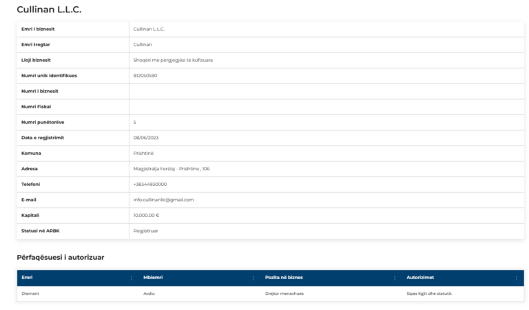 Sipas të dhënave të ARBK-së, kjo kompani figuron në pronësi të vëllezërve Avdiu nga Ferizaj, të cilët janë edhe pronarë të “Auto Sallonit Sherreti”. Në regjistër figurojnë si pronarë Diamand Avdiu dhe Fehat Zeqiri.