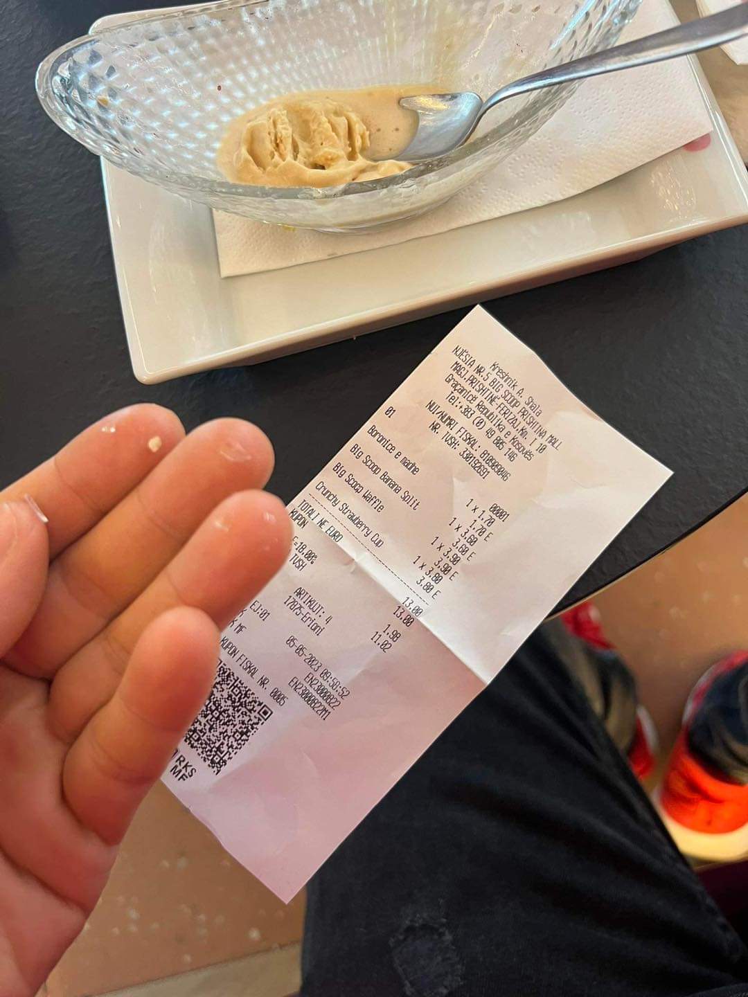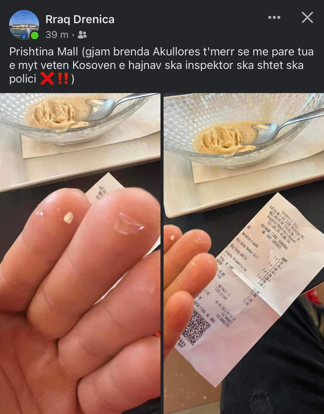 Shikoni fotot e publikuara nga qytetari, e ku shihet fatura e akullores dhe copa e xhamit./Veriu.info