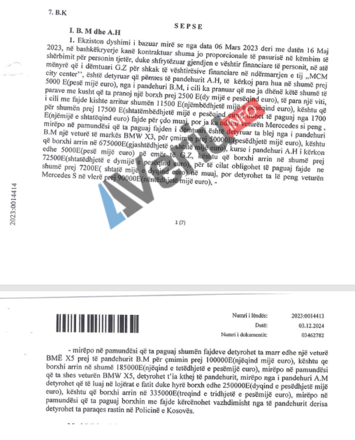 Nga këto 130 mijë euro borxh që iu kanë akumuluar nga data 2 dhjetor 2022 deri më 28 shkurt 2023, i dëmtuari G.Z. i ka marrë realisht vetëm 11 mijë euro më 2 dhjetor, 12 mijë euro për pagesë të borxhit ndaj O.P. dhe 10 mijë euro mbetje nga shitja e “Range Rover”, që në total janë 33 mijë euro.