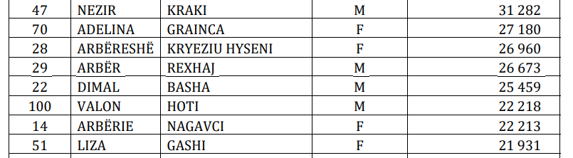 Sipas rezultateve të deritashme të publikuara në KQZ, z.Basha renditet pas figurave si Agim Bahtiri, Adriana Matoshi, Edona Llalloshi etj., me mbi 21,760 vota gjithsej.
