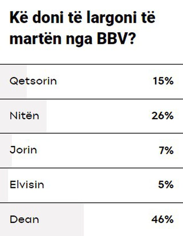 Nga sondazhi i realizuar nga xing.al rezulton se më e votuara për të dalë është Dea.