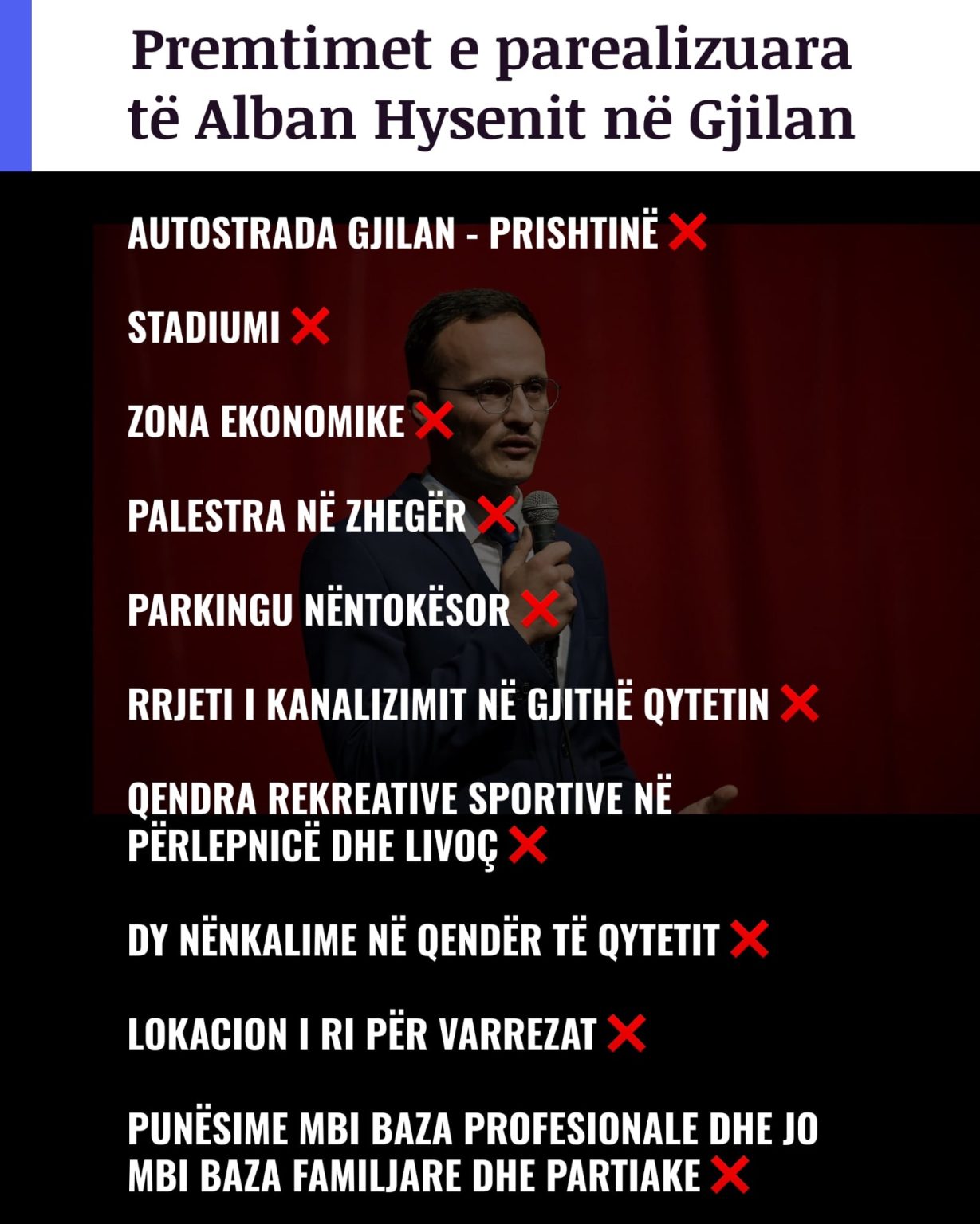 Premtoi shumë dhe dështoi. Këto janë vetëm disa nga shumë premtime të parealizuara të kryetarit në ikje. Qytetari i Gjilanit nuk mashtrohet më!