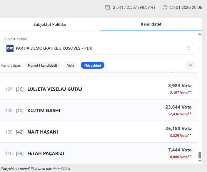 Nga PDK, janë 20 kandidatë që kanë diferencë më shumë se 100 vota nga rinumërimi: