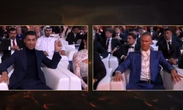 Pak para se të zbulohej emri i fituesit, Ronaldo u pa duke e drejtuar gishtin kah norvegjezi, duke treguar se ai e meriton çmimin kryesor të mbrëmjes.