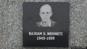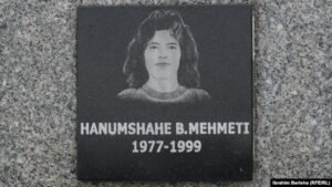 Hanushahja, motra e Benjaminit në pllakën përkujtimore të të vrarëve në masakrën e Reçakut.