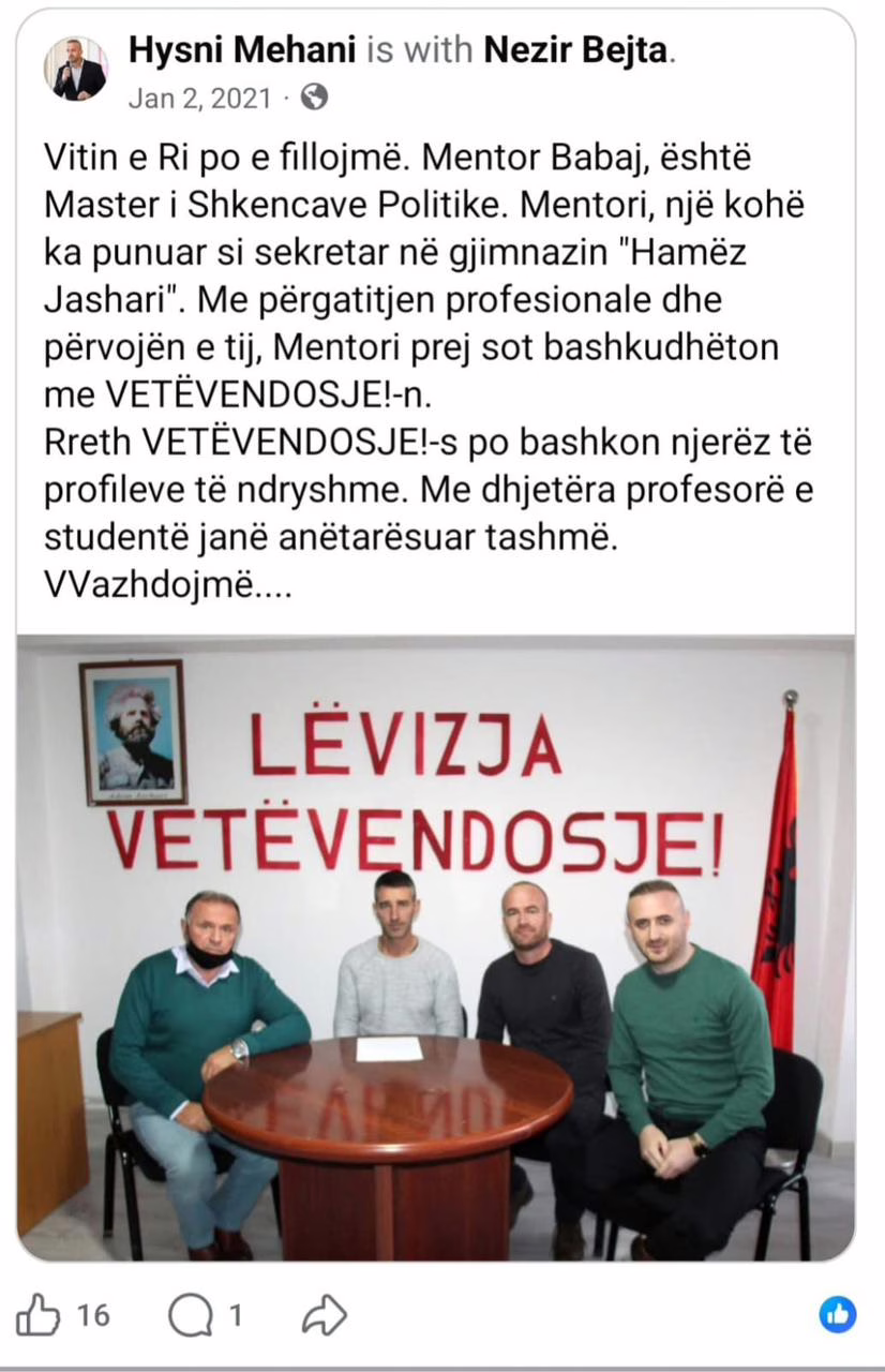 “Nuk i dhezi në Vetëvendosje, andaj, është rehabilitu si drejtor në Urbanizëm në Skenderaj.”, ka thënë për rajoni një burim.