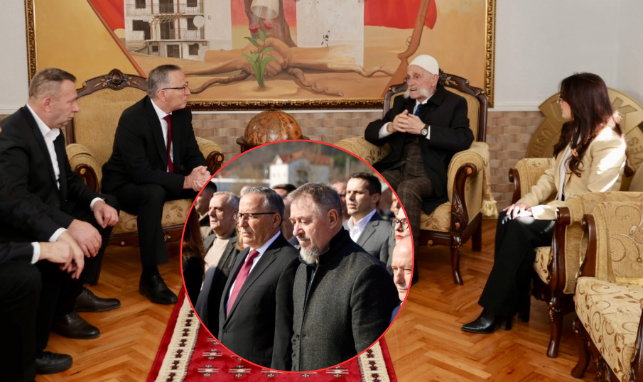 Por sot, kryetari i PDK-së, Bedri Hamza, është mirëpritur në odën e Jasharajve nga baca Rifat, raporton Veriu.info.