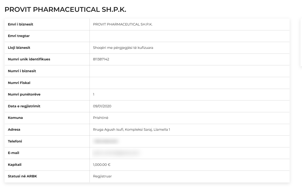 “Provit Pharmeceutical” kishte garuar për një tender për furnizimin në listën esenciale të barnave. Megjithatë, nuk kishte arritur t’i ofrojë dokumentet e kërkuara nga SHSKUK’ja. Saktësisht vërtetimin e ATK’së dhe vërtetimin e gjykatës, se nuk janë nën hetime, shkruan Gazeta Insajderi.