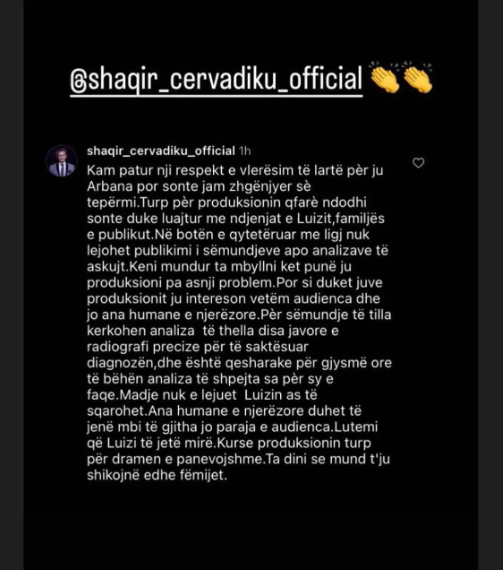 Ai është shprehur i zhgënjyer me Arbanën dhe me gjithë produksionin të cilët sipas tij kanë luajtur me ndjenjat e Luizit, familjes dhe publikut.